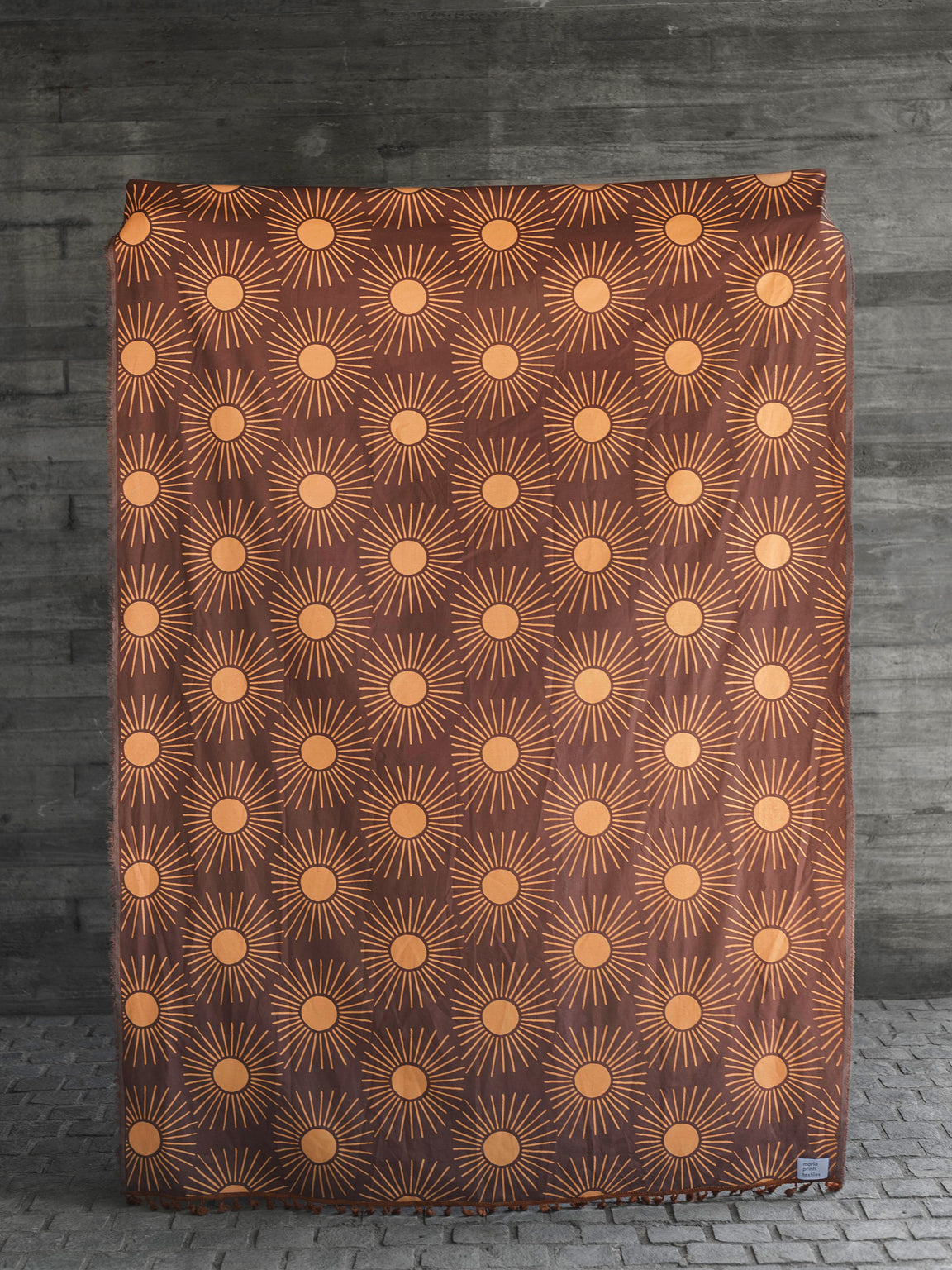 Paño de lino estampado en serigrafía, ideal para llevar a la playa (por su secado rápido) o para poner en un sofá, piecera de cama o manta de picnic.
