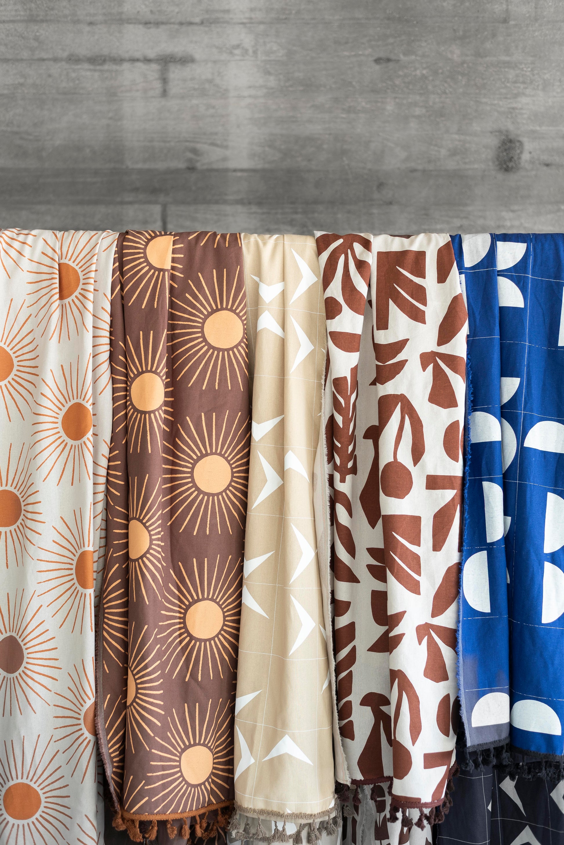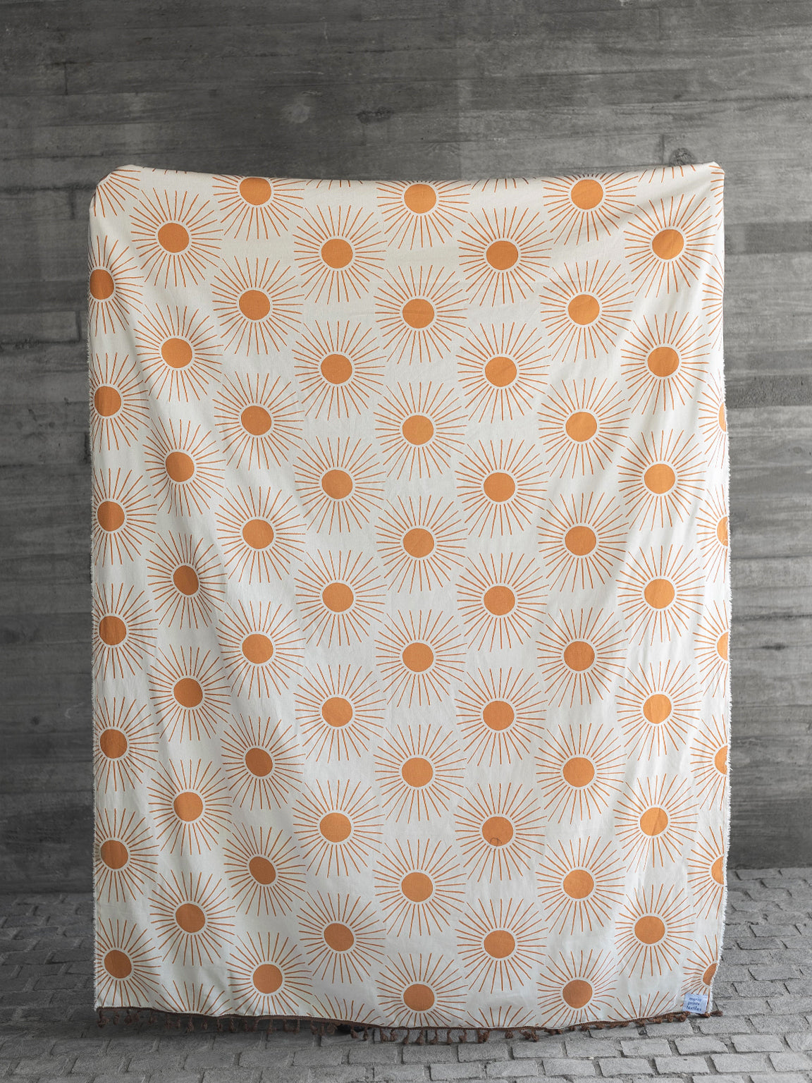 Paño de lino estampado en serigrafía, ideal para llevar a la playa (por su secado rápido) o para poner en un sofá, piecera de cama o manta de picnic.