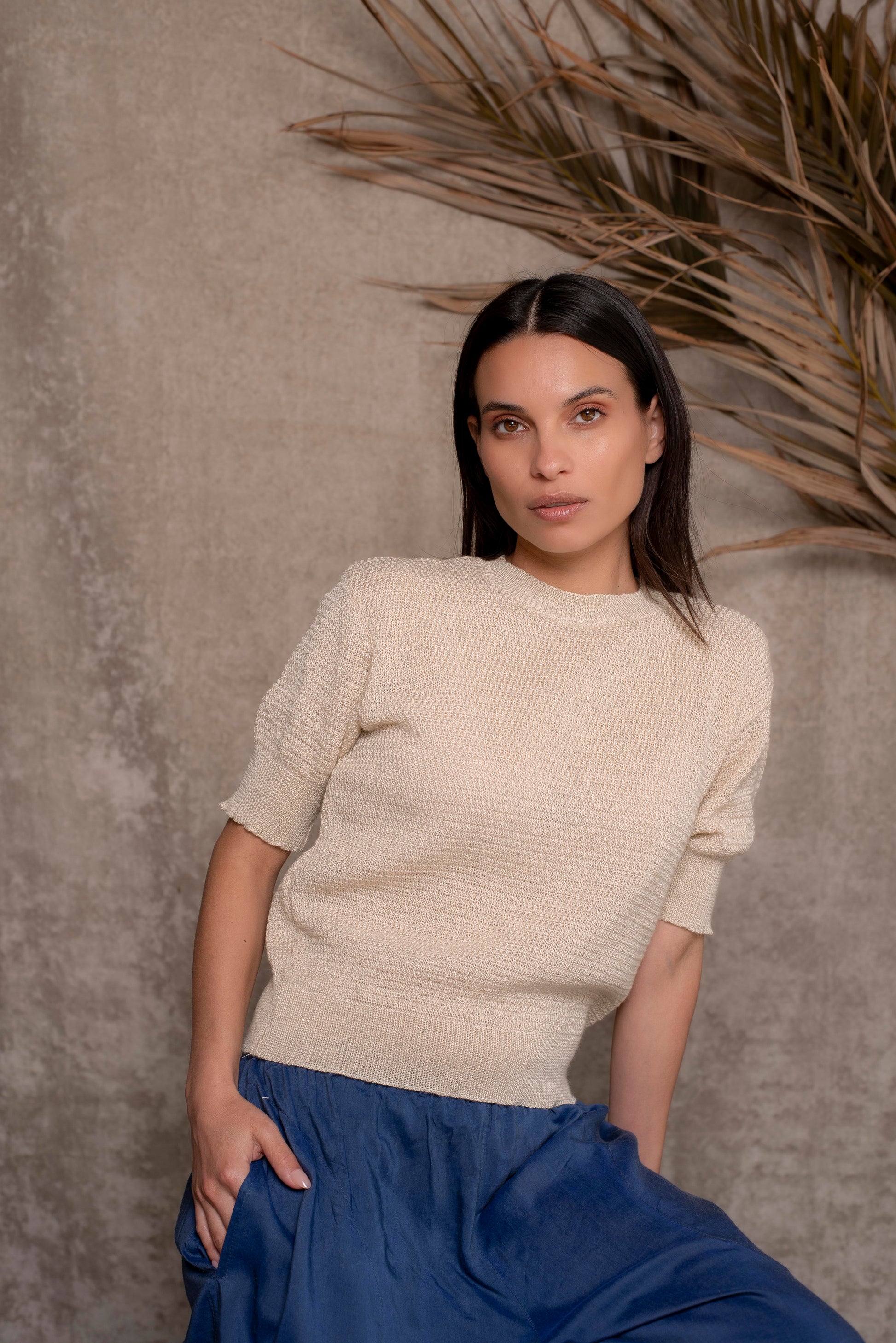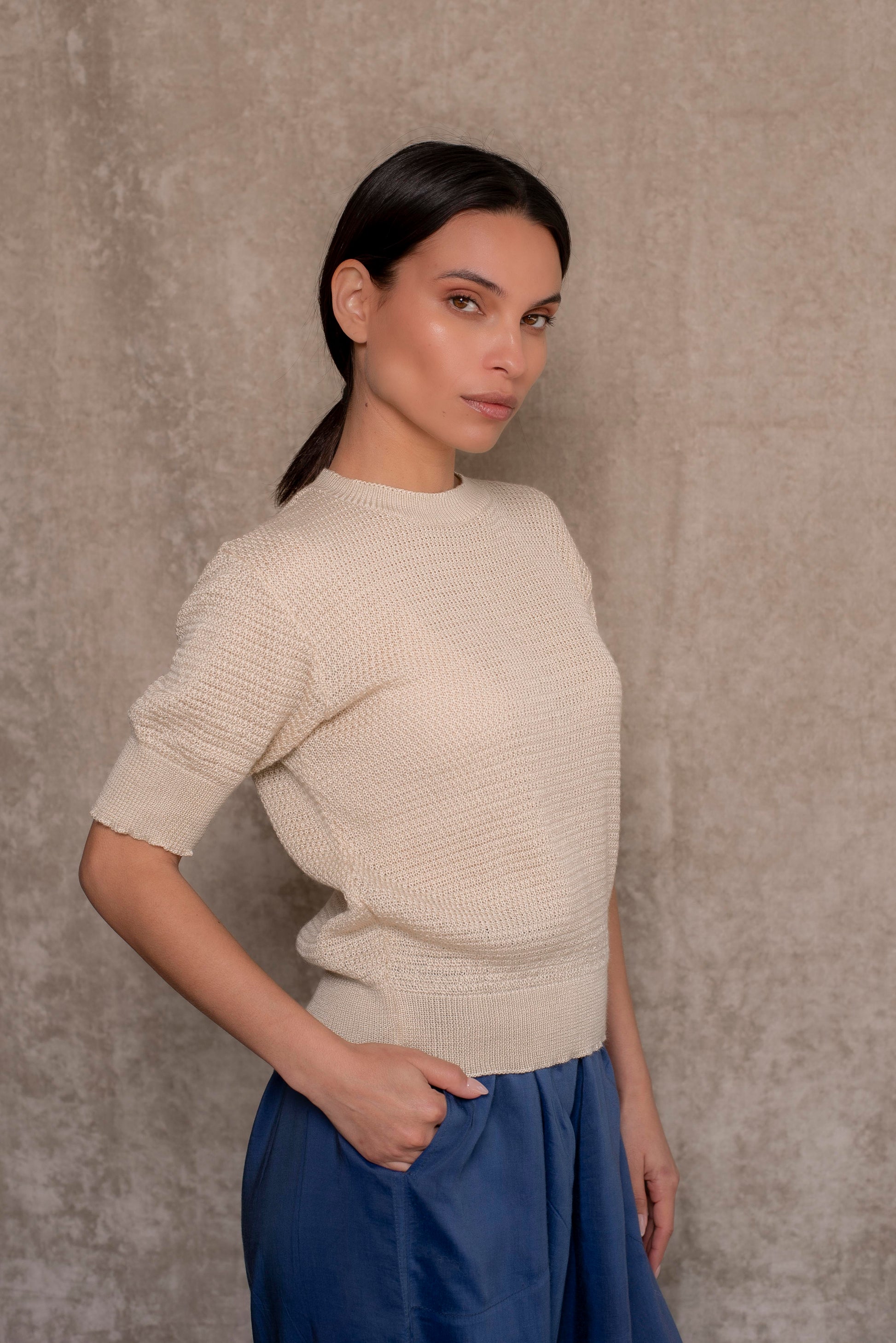 Polera manga corta tejida
